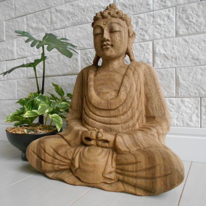 一刀彫 仏陀坐像 26cm 仏像 仏陀 ブッダ オブジェ 仏像の置物 仏陀の置物 置物 彫刻 オリエンタル エスニック アジアン風 悟り 瞑想 アジアン雑貨 バリ雑貨