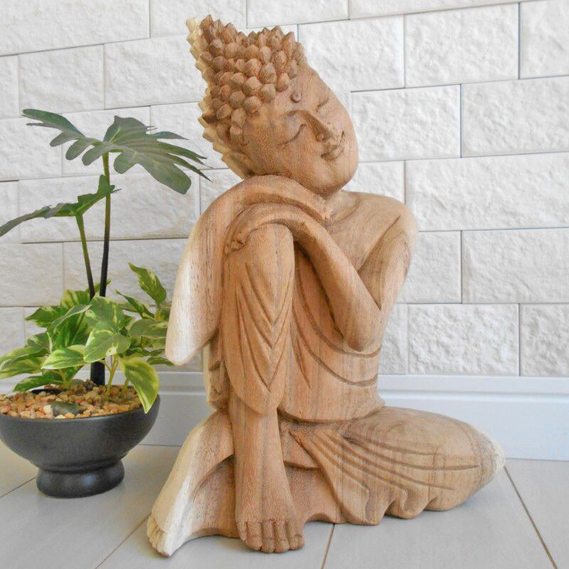 一刀彫 頬杖仏陀 26cm 仏像 仏陀 ブッダ オブジェ 仏像の置物 仏陀の置物 置物 彫刻 オリエンタル エスニック アジアン風 悟り 瞑想 アジアン雑貨 バリ雑貨